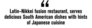 KION, a Latin–Nikkei fusion restaurant, serves delicious South American dishes with hints of Japanese cuisine; fresh guacamole topped with pico de gallo, chillies and an architecturally striking tower of plantain chips for dipping, prawns majadito with a chilli and garlic sauce, and the delightfully zingy nikkei-style sea bream ceviche cured in tiger milk, all made superb starters.