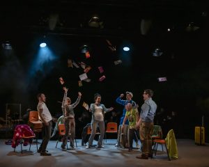 You can’t talk about Group! without mentioning the musical numbers. Written by the insanely talented Conor Mitchell, the songs are, in his words, “meant to honour the great American Songbook”. The songs vary in style but not quality. They are powerful and rousing and show the full range of talent rife throughout the Belfast Ensemble. There is not one stand out hit as they are all so remarkable, and incredibly catchy. Lines of ‘Hate Mail’ have been running through my head since I left the theatre.