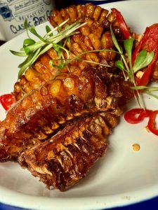 We called in to try the latest Sunday Menu, and started with a few small plates including crispy corn ribs in a salt and chilli seasoning, beautifully tender salt & chilli squid with napa slaw and lime aioli, and padron peppers. Then, golden, crispy, beer battered fish & chips with tartare sauce, lemon, dressed salad, and the best marrowfat peas we’ve ever tried – we kid you not! We also loved the veggie charred hispi cabbage with rarebit sauce, roasted cashew nuts, and artichoke crisps.